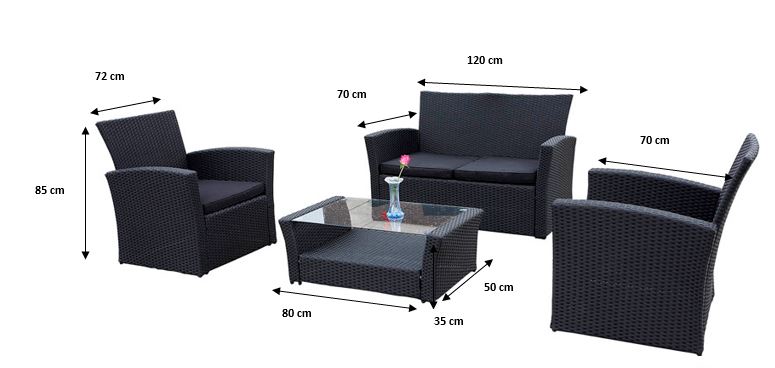 Aiamööblil on terasest raam, mis on kaetud ilmastikukindla sünteetilise rotangiga (punutise mõõtmed 7-8mm x 1,2mm). Sünteetilist rotangit iseloomustab vihma-, külma-, temperatuuri- ja UV-kindlus, see on mittetoksiline ja loodussõbralik (100% taaskasutatav) materjal.