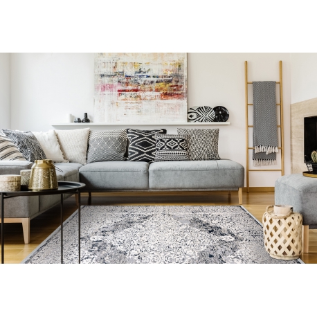 Vaip REBEC 51122A kreemjas / sinine, kahetasandiline fliis, narmastega