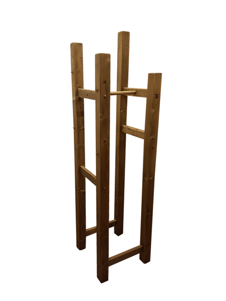 - Iga vertikaalse posti küljes on erinevate kõrgustega 4 puidust nagikonksu (igal välisküljel 2tk, kokku 16 nagikonksu).
