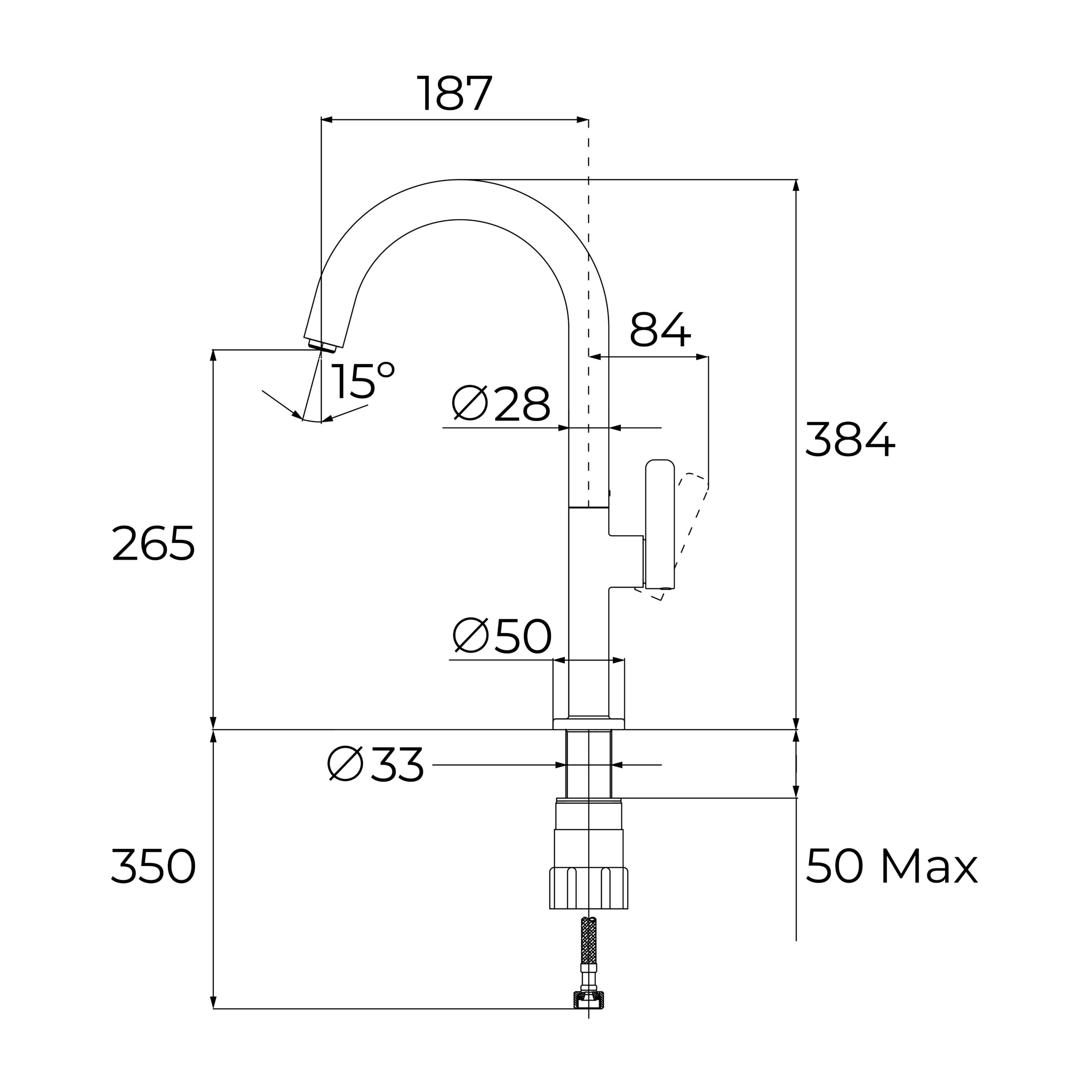 • 3/8″ paindlikud sisselasketorud