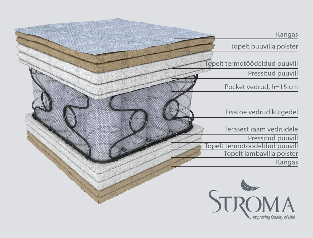 Madrats on pocket tüüpi vedrustusega, mis järgib inimese kehakuju, sõltumatu vedrusüsteem toetab selga ja kehakaal jaguneb ühtlaselt madratsile, mis kindlustab parima magamismugavuse